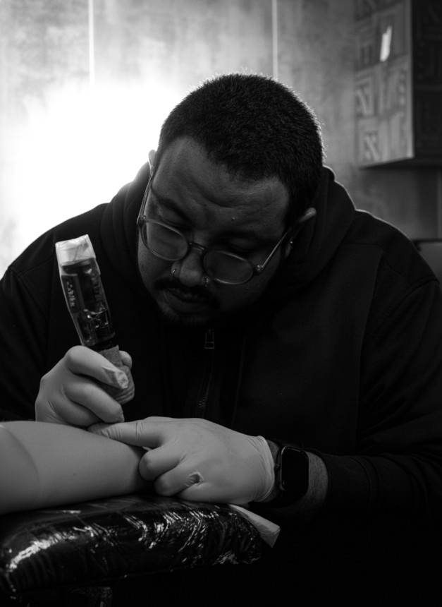 Soy Nicolás, un bogotano que cambió las montañas por la tinta en Lugo. Mi viaje empezó en 2014 fabricando mis propias máquinas de bobinas, lo que me dio un respeto profundo por la mecánica del tatuaje antes incluso de empezar a pinchar en 2015. Desde entonces, mi obsesión es que cada línea sea tan sólida que dure toda una vida.