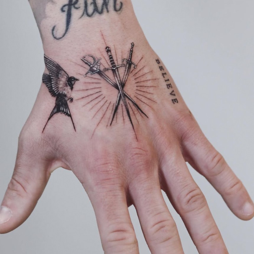 Precisión extrema: Los tatuadores utilizan agujas de una o tres puntas (conocidas como "liners") para crear líneas finas y detalles microscópicos, replicando texturas como piel, pelo o plumas con un realismo sorprendente.