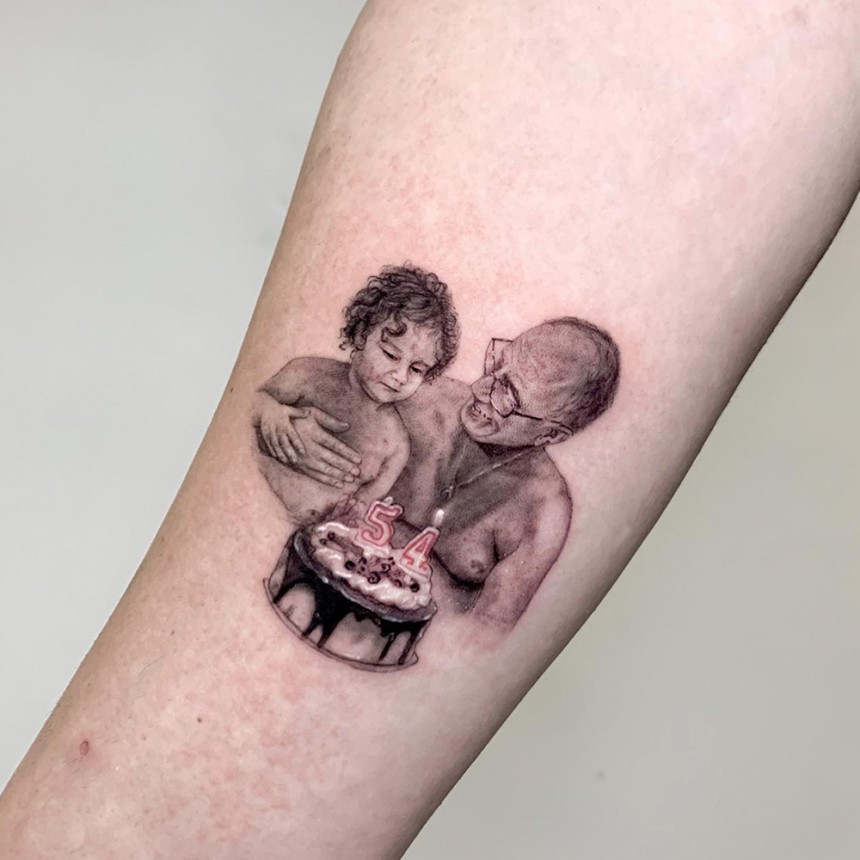 Retratos en miniatura: Rostros de seres queridos, celebridades o personajes históricos, capturados con un nivel de detalle que incluye arrugas, pestañas y expresiones faciales. Estos tatuajes suelen colocarse en áreas como el antebrazo o la muñeca.