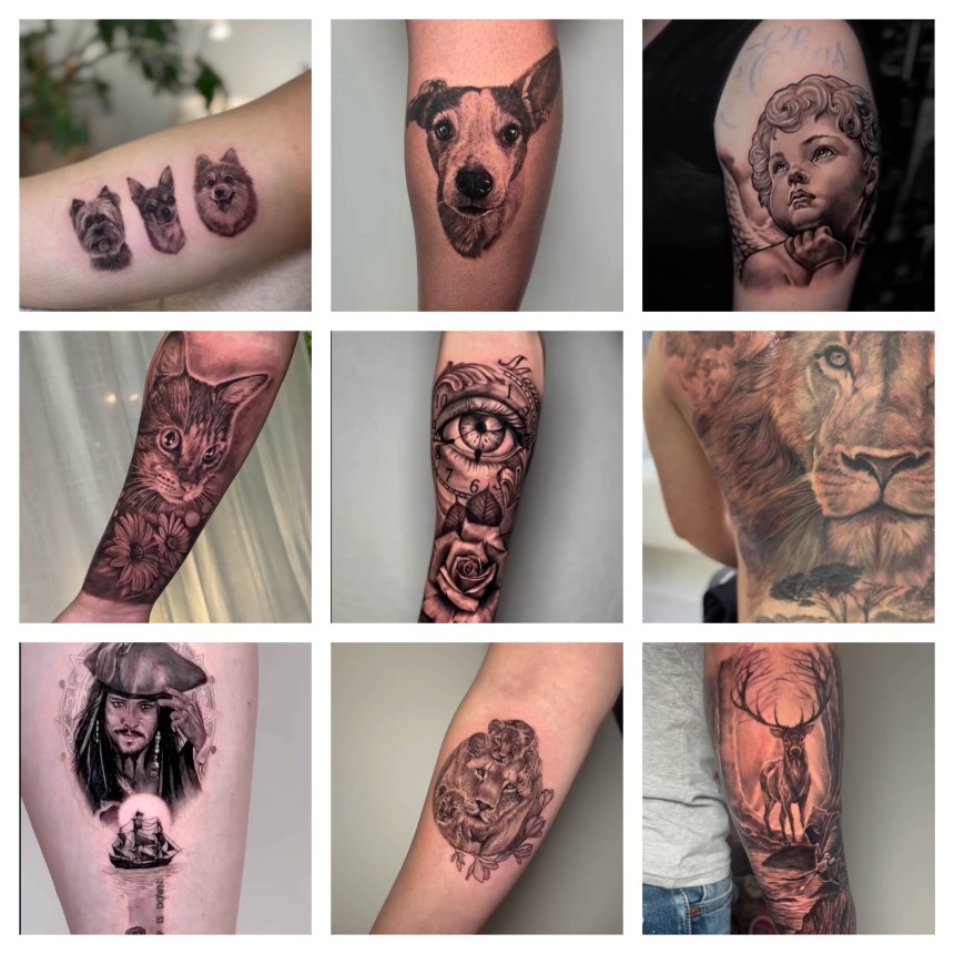 Personalización: La precisión del estilo permite a los artistas adaptar los diseños a las historias personales de los clientes, desde homenajes a seres queridos hasta representaciones de pasiones o intereses.